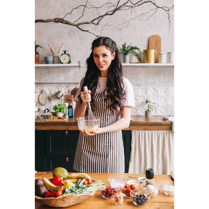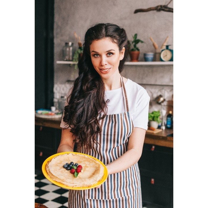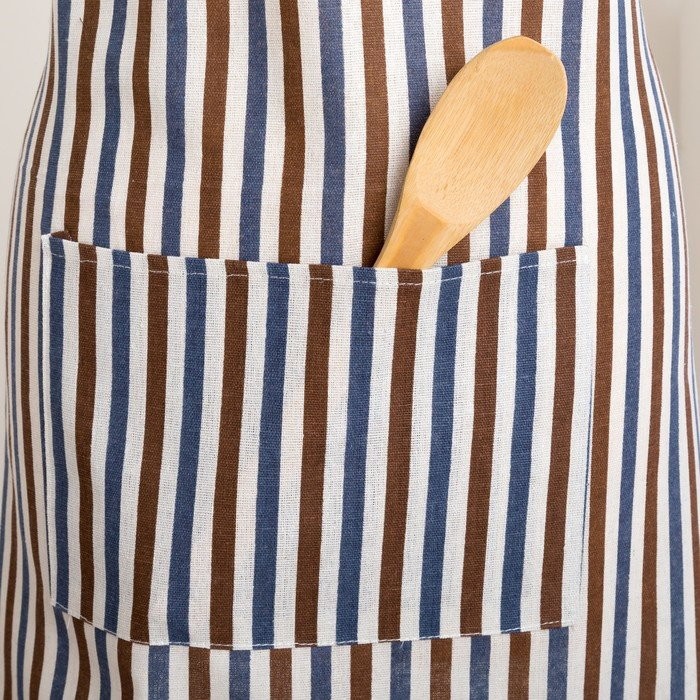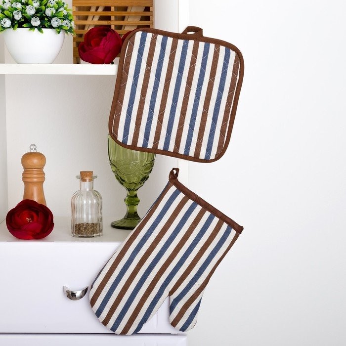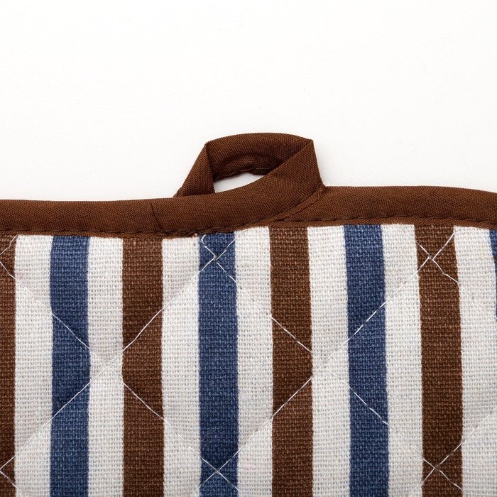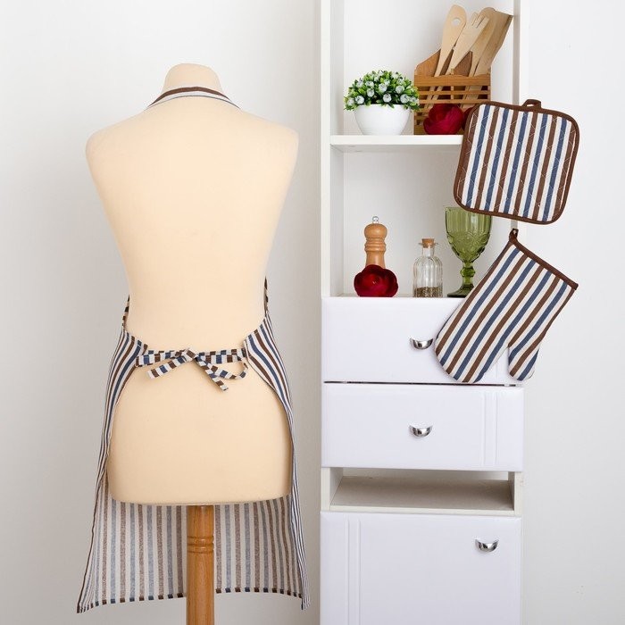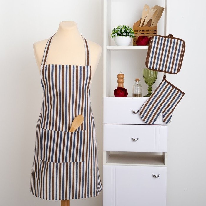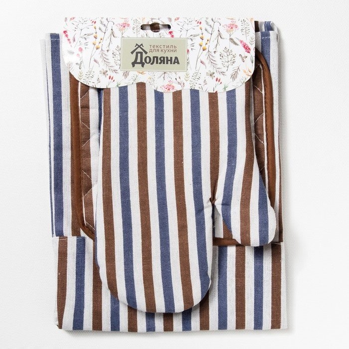 Набор Доляна фартук/прихватка/варежка, Полоска син-корич,100%пэ, рогожка 200 гр/м