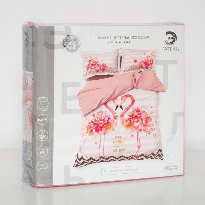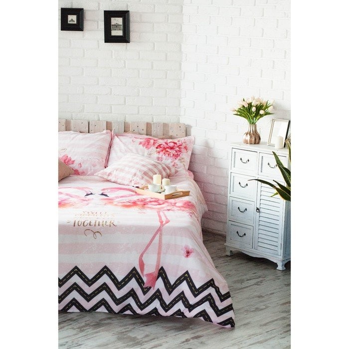 Постельное бельё Этель Flamingo, 1.5-сп., 143 × 215 см, 150 × 214 см, 50 × 70 (+3) см  (2 шт.)