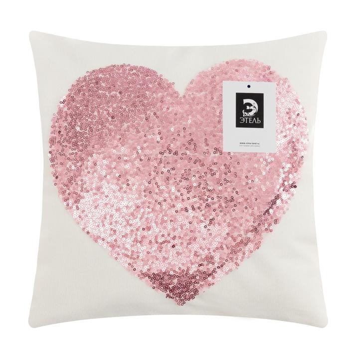 Наволочка Этель «Сердце» цв. розовый,40×40 см, велюр