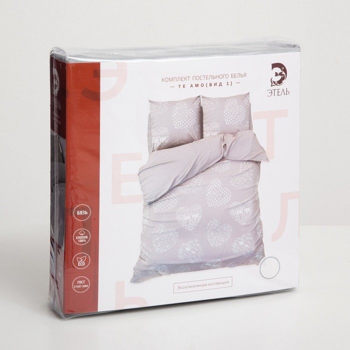 Постельное бельё «Этель» дуэт Te amo (вид 1) 143×215 см — 2 шт., 220×240 см, 70×70 см — 2 шт, бязь
