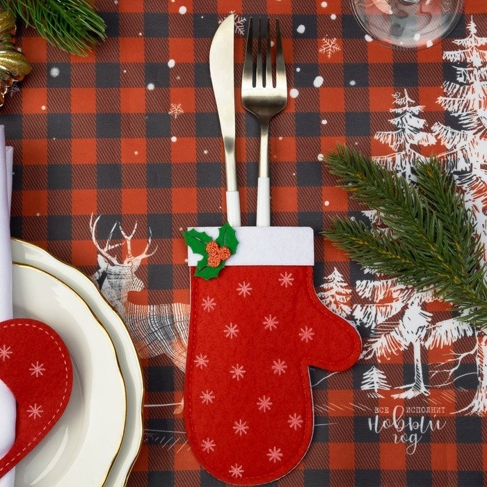 Конверт для столовых приборов «Варежка» 10×15 см, 100% п/э, фетр