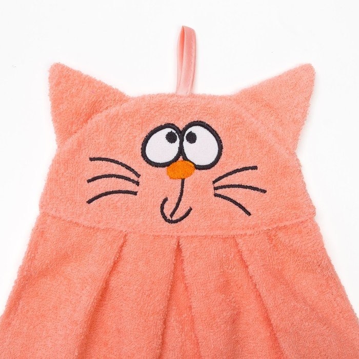 Полотенце-рушник махровый «Котик», 43×35 см, персик, хл100%, 300 г/м²