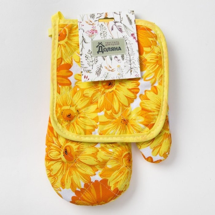 Кух. набор 2 пр. Доляна"Cолнечный»,прихватка 17×17 см, рукавица 26×16 см,100% п/э