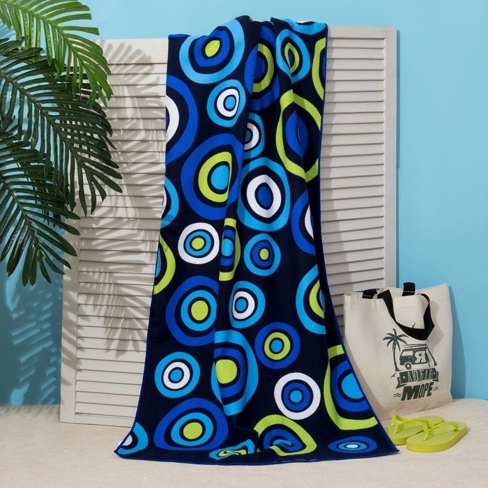 Полотенце пляжное Этель 70*140 см, Синие круги, микрофибра 250гр/м2