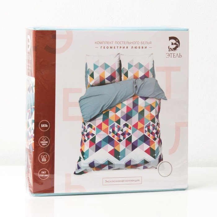 Постельное бельё «Этель» евро Геометрия любви 200×217 см, 240*220 см, 70×70 — 2 шт, бязь