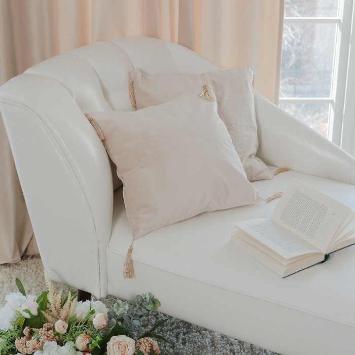 Наволочка декоративная «Этель» Валенсия Белое золото с кисточками 40×40 см