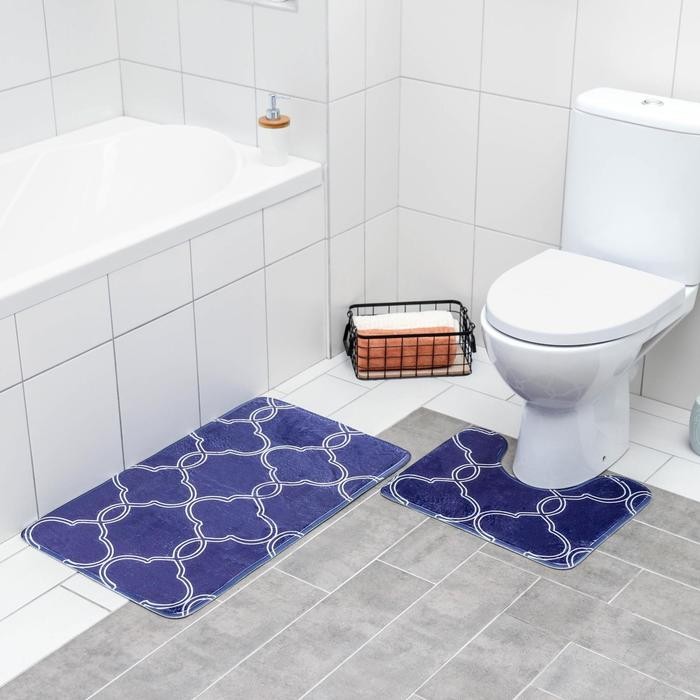 Набор ковриков для ванны и туалета Доляна «Виньер», 2 шт: 44×50, 50×80 см, цвет синий