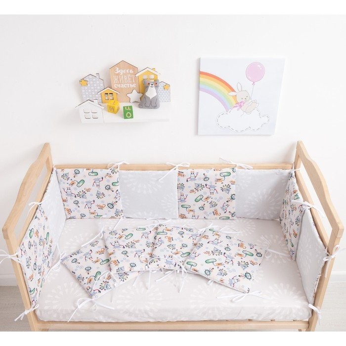 Бортики в кроватку Крошка Я «Роботы» (32×32 см — 12 шт.), бязь/синтепон