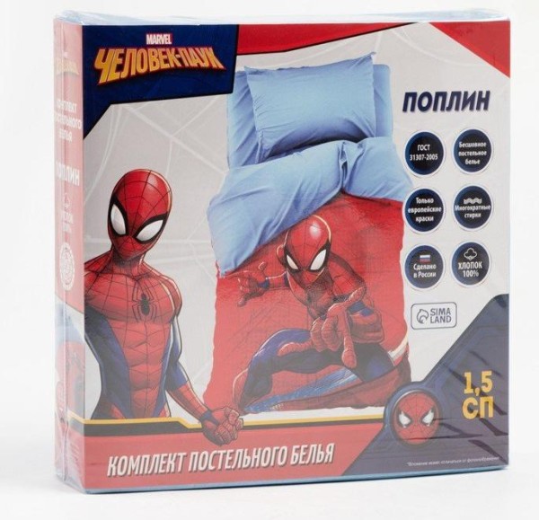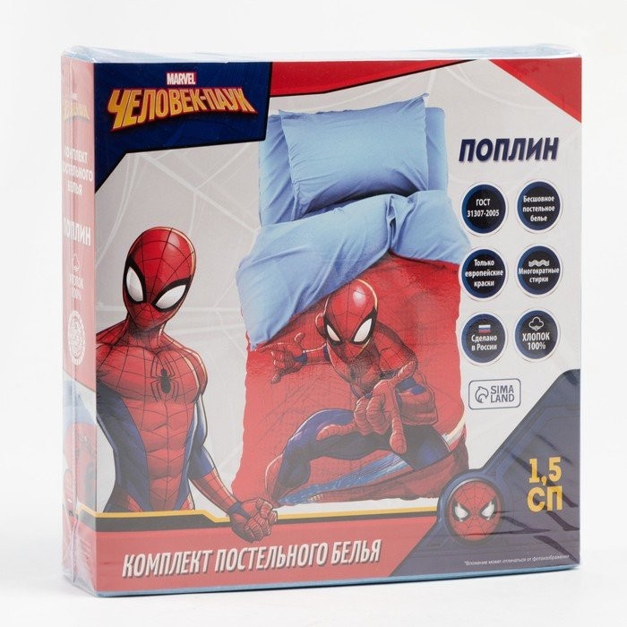 Постельное бельё 1,5 сп «Человек-паук» 143*215 см, 150*214 см, 50*70 см -1 шт., поплин 125 г/м2