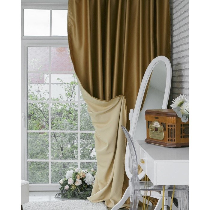Штора портьерная «Этель» 270×300 см, двусторонний блэкаут, цвет Золотой, пл. 240 г/м², 100% п/э