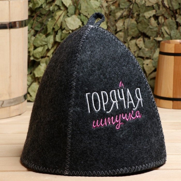Шапка для бани с вышивкой «Горячая штучка», серая