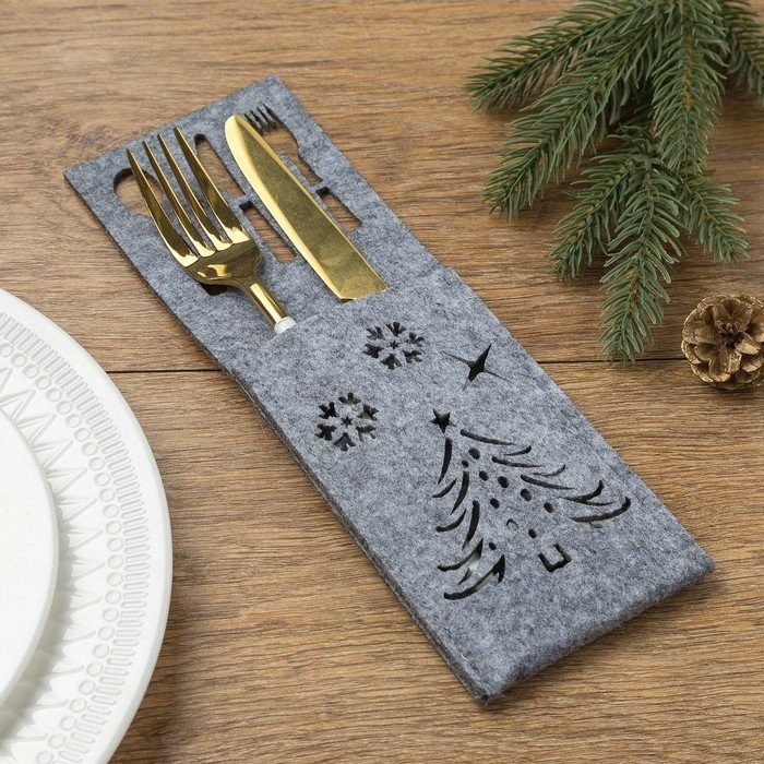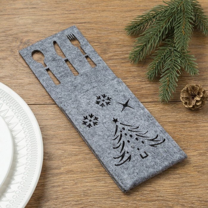 Конверт для столовых приборов Доляна «Новый год», цвет серый, 25×8, 5 см