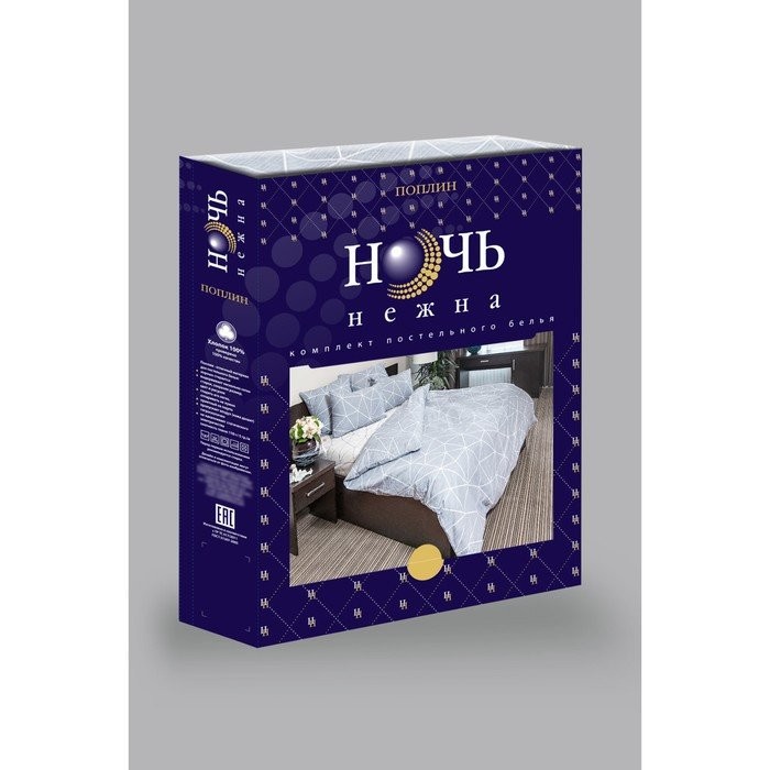 Постельное бельё Ночь Нежна евро «Грань», сер 200×220, 220×240, 70х70см 2шт, поплин