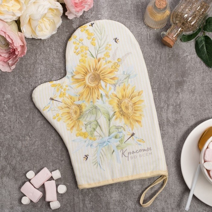 Варежка-прихватка «Красоты во всем» 20х28см, саржа, 100% х/л, ватин 250г/м2