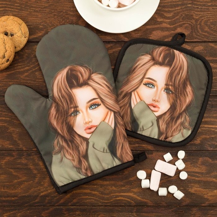 Кухонный набор (2 предмета) Этель LoveLife «Крутая», прихватка 17×17 см, рукавичка 26×16 см, 100% п/э
