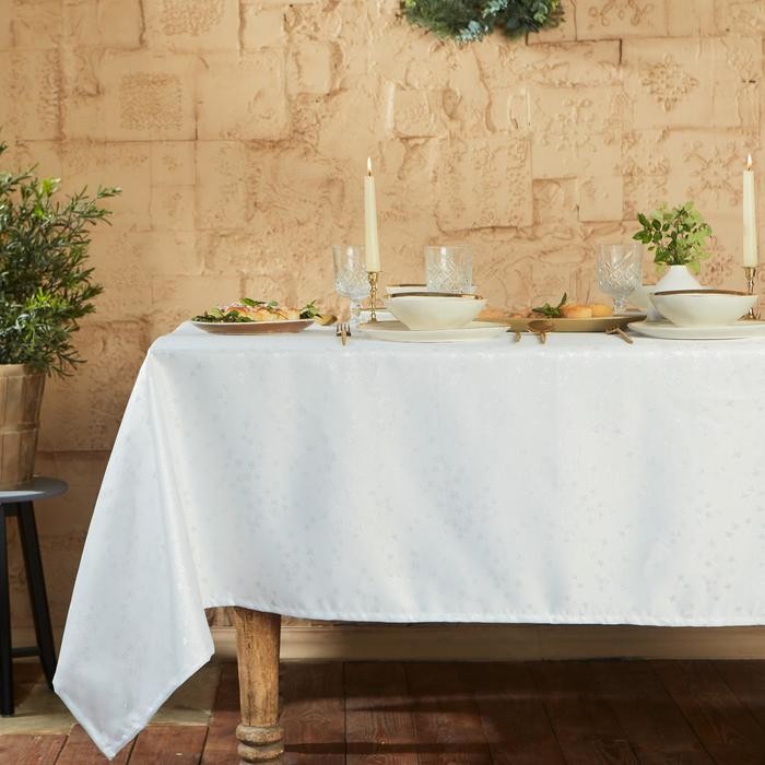 Скатерть Этель «Серебряные звезды» цв.белый, 142*220 +/-3 см, 115 ±10 гр,100% п/э