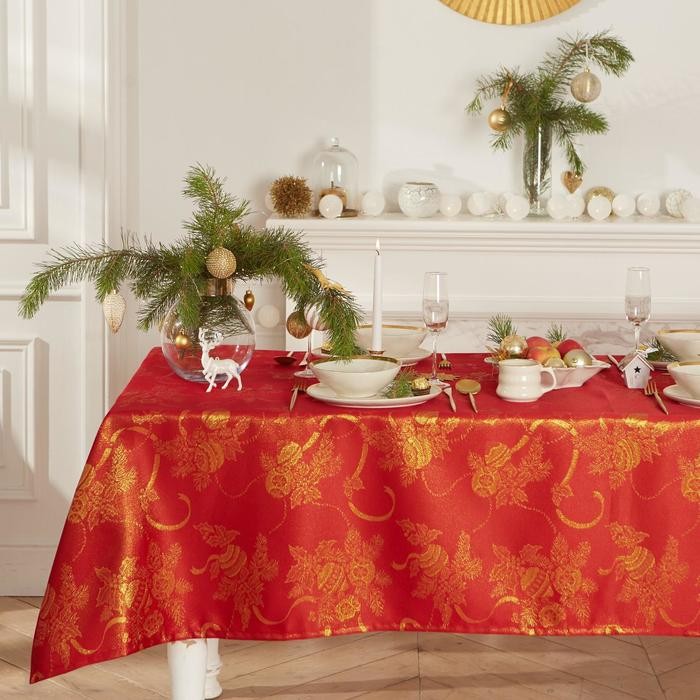 Скатерть Этель «Счастливый Новый год» красный, 150*220 см, 115 ±10 гр,100% п/э