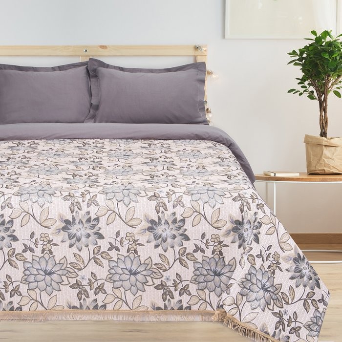 Покрывало гобеленовое Этель «Роскошь» с бахромой, серебряный, 240х200см, п/э 80%, хл 20% (450 г/м2)