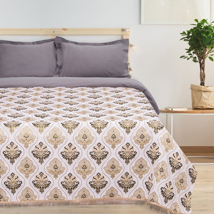 Покрывало гобеленовое Этель «Барокко» с бахромой, бежевый, 140х200см, п/э 80%, хл 20% (450 г/м2)