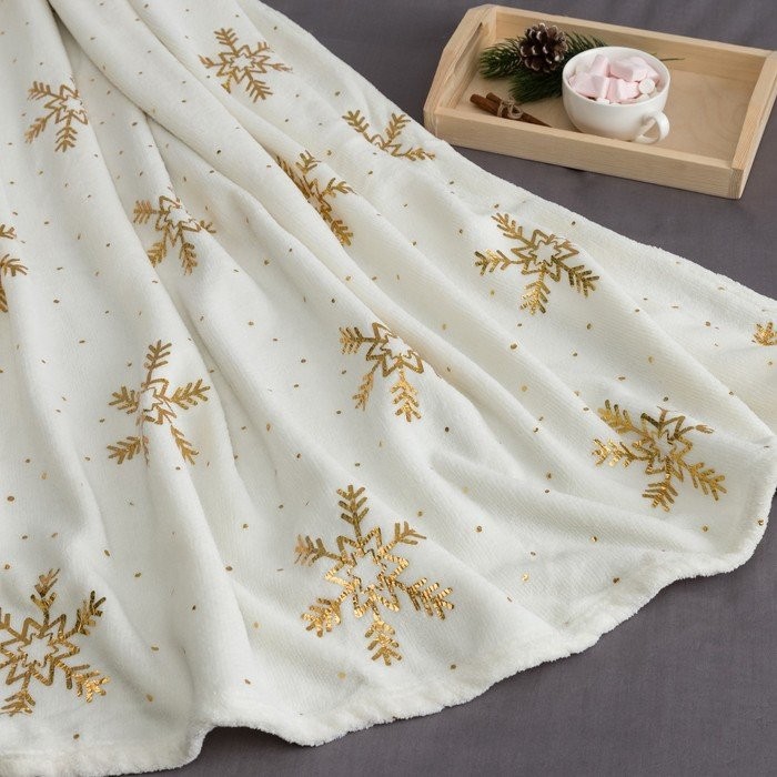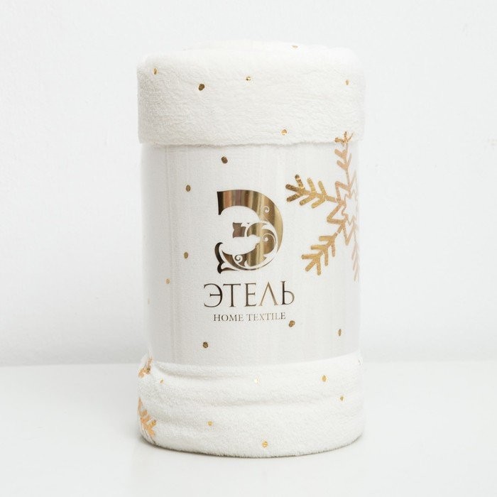 Плед Этель «Золотые снежинки», белый, 180×200 см, корал-флис