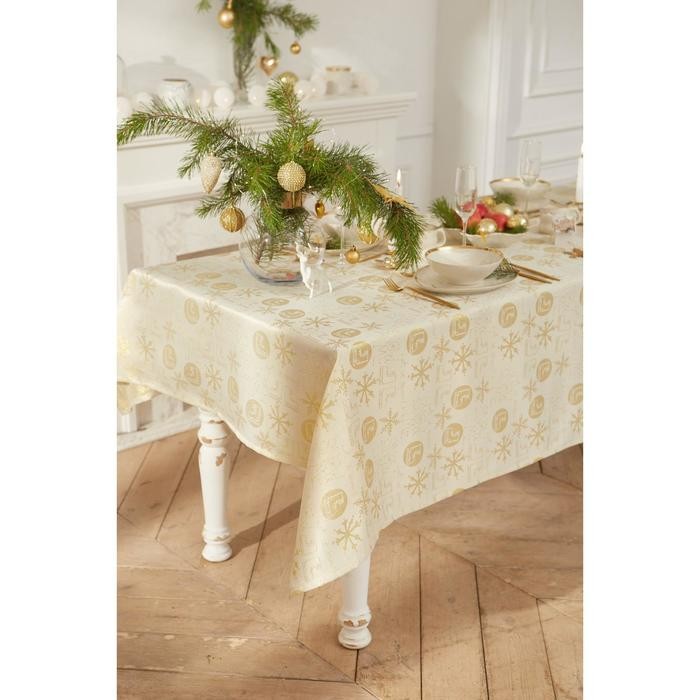 Скатерть Этель «Snow time» цв.золотой, 150*180 см, 115 ±10 гр,100% п/э