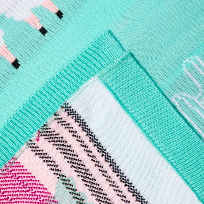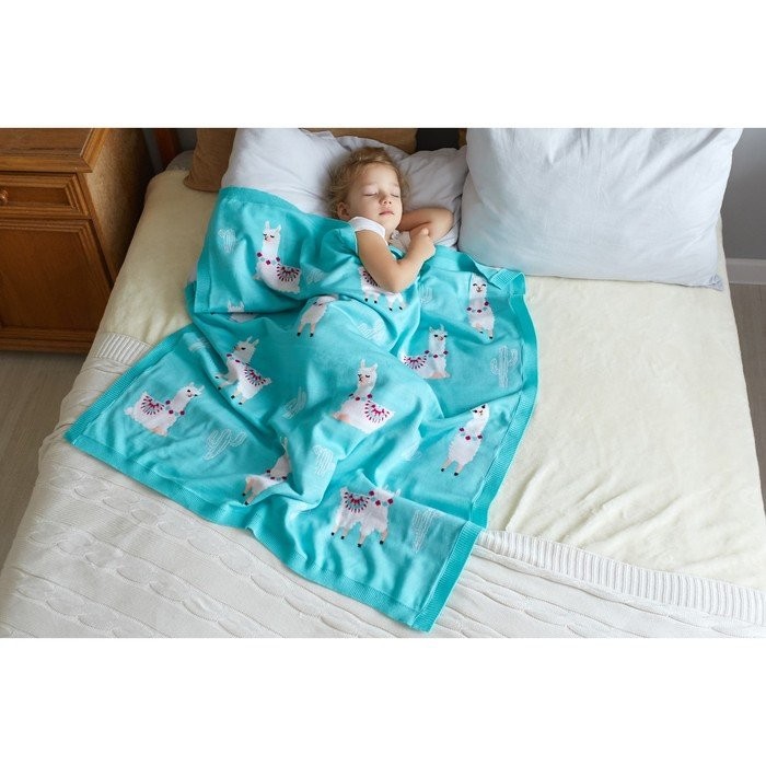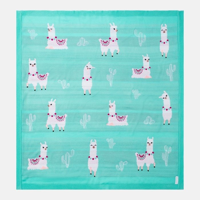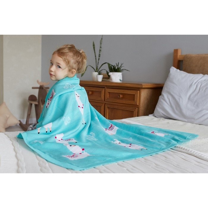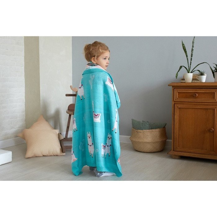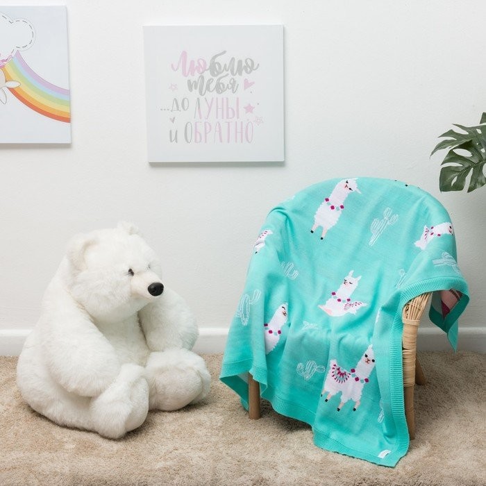 Вязаный плед «Крошка Я» Ламы, размер 90×90 см, цвет бирюзовый
