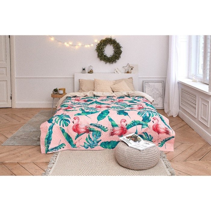 Покрывало «Этель» 2 сп Tropical flamingo, 175*210±2 см, микрофибра