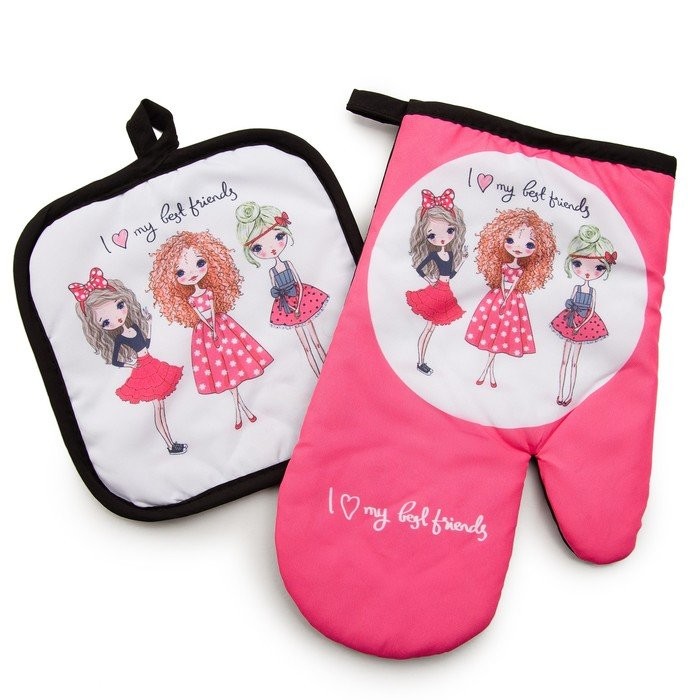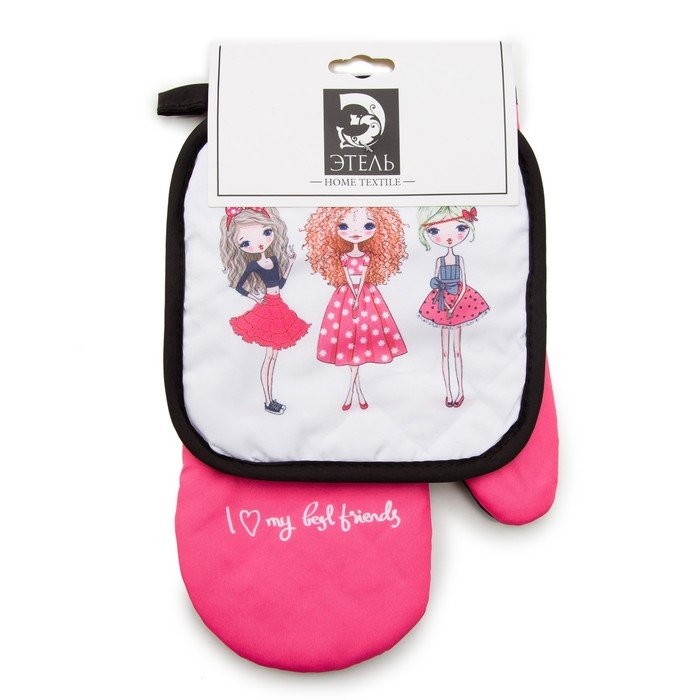 Кух. набор 2 пр. Этель Love Life «Подружки», прих. 17*17 см, рукав. 26*16 см,100% п/э