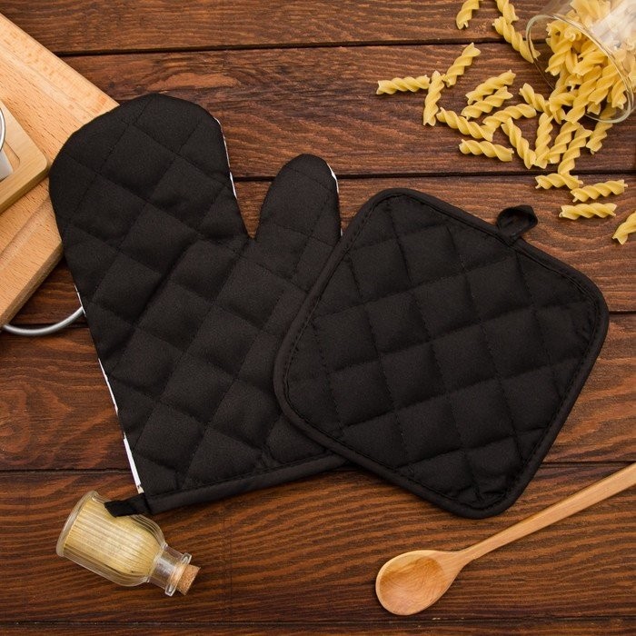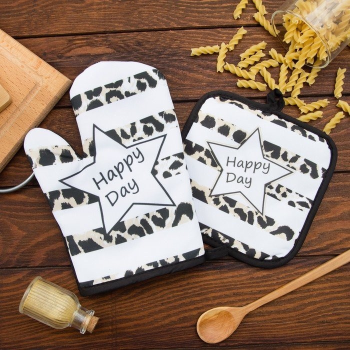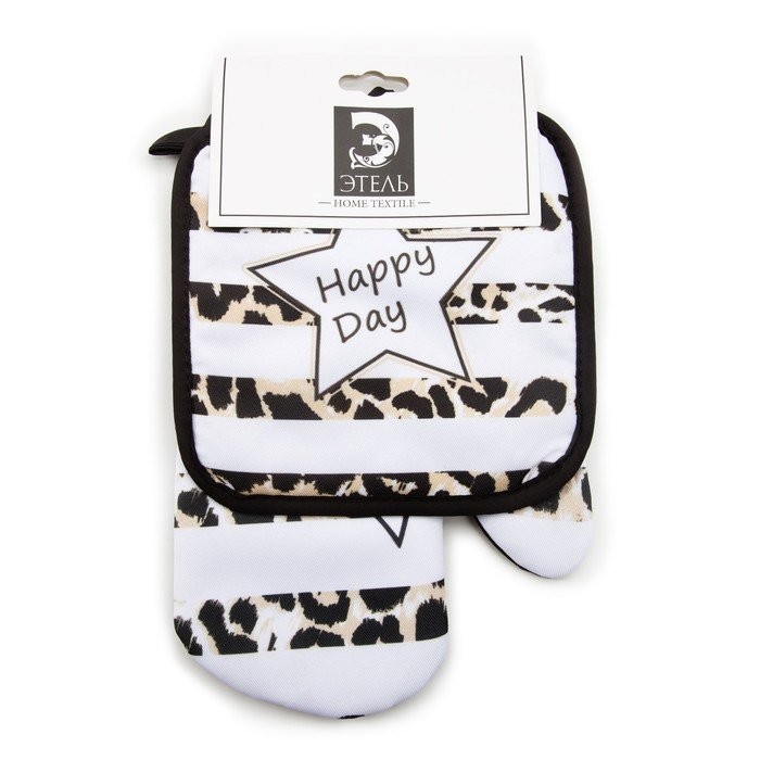 Кухонный набор (2 предмета) Этель LoveLife Happy, прихватка 17×17 см, рукавичка 26×16 см, 100% п/э