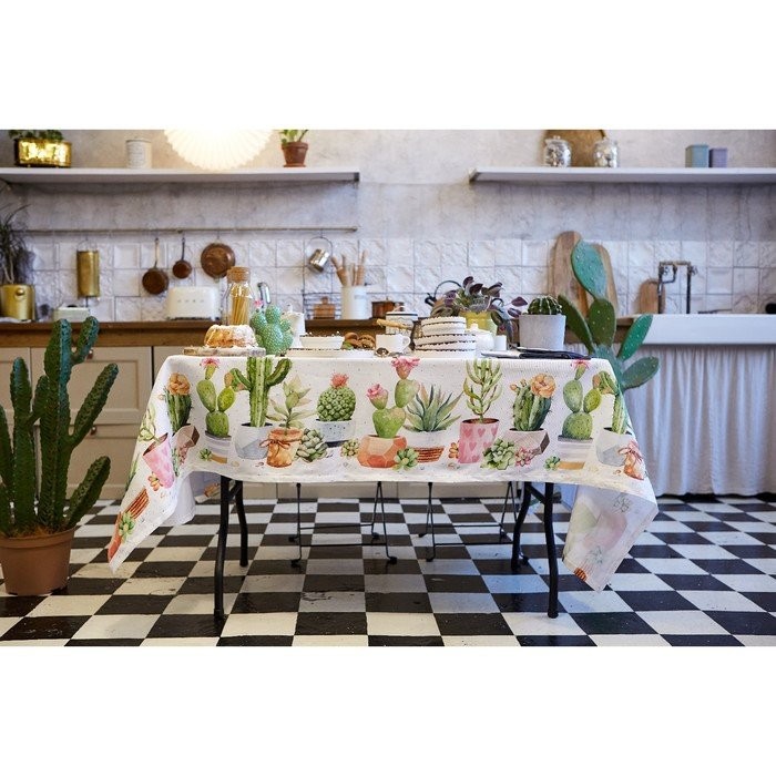 Скатерть Этель «Кактусы» 220×147 см, 100% хл, рогожка 160 гр/м2