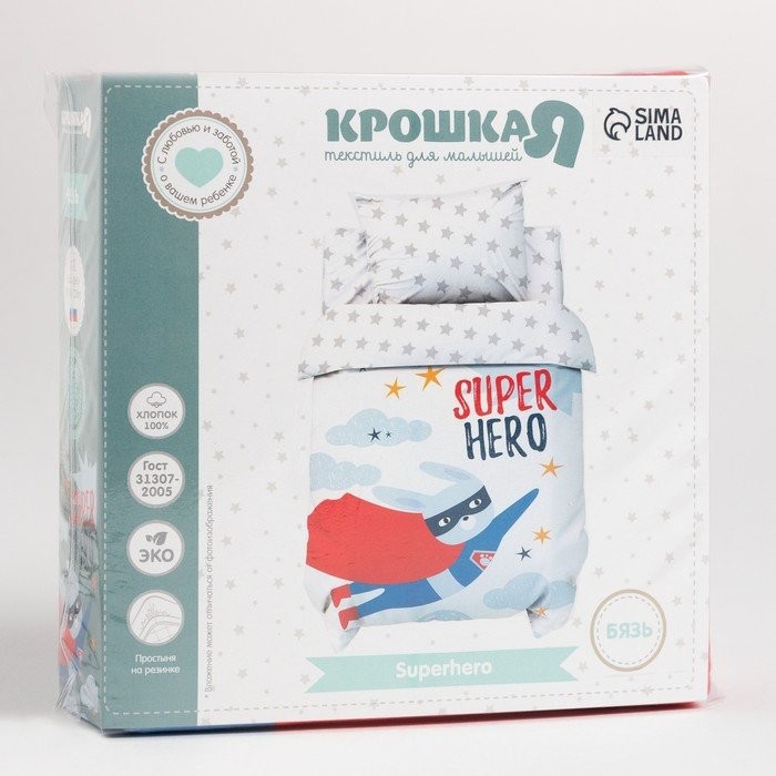 Постельное бельё детское Крошка Я «Super hero», 112×147 см, 60×120+20 см, 40×60 см, 100% хлопок
