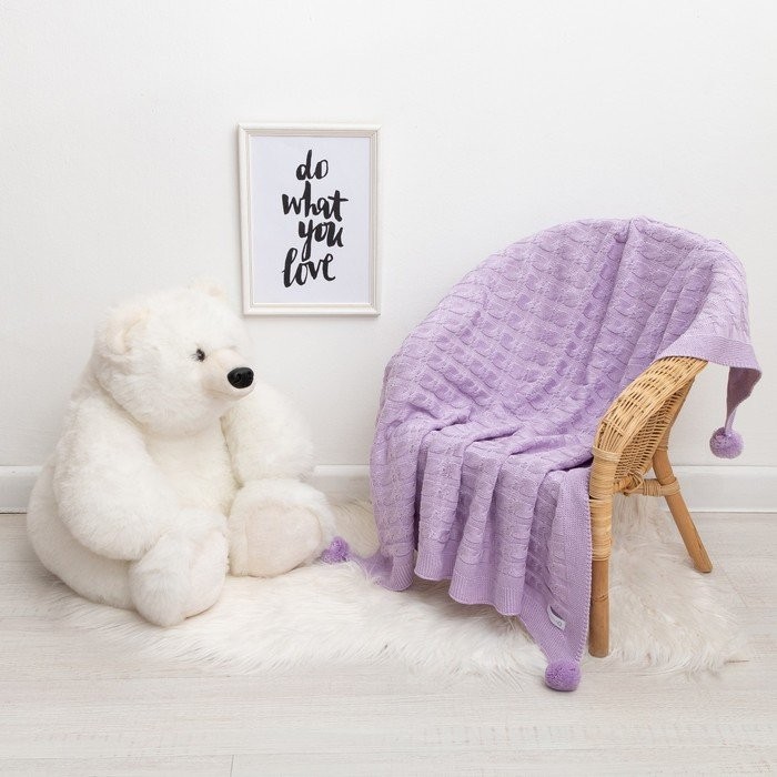 Вязаный плед Крошка Я Рисунок коса, 90×90 см, цвет сиреневый