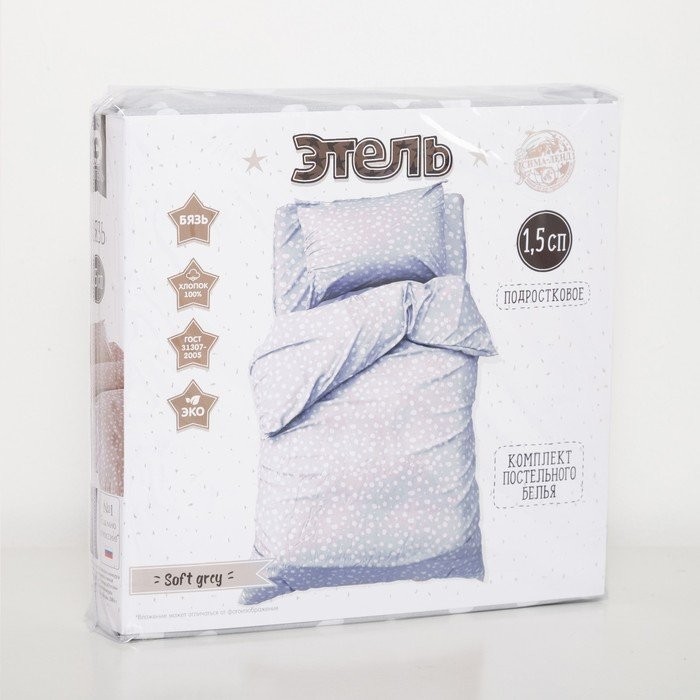 Постельное белье «Этель» 1,5 сп Soft grey 143×215 см, 150×214 см, 50×70 см -1 шт, 100% хл, бязь