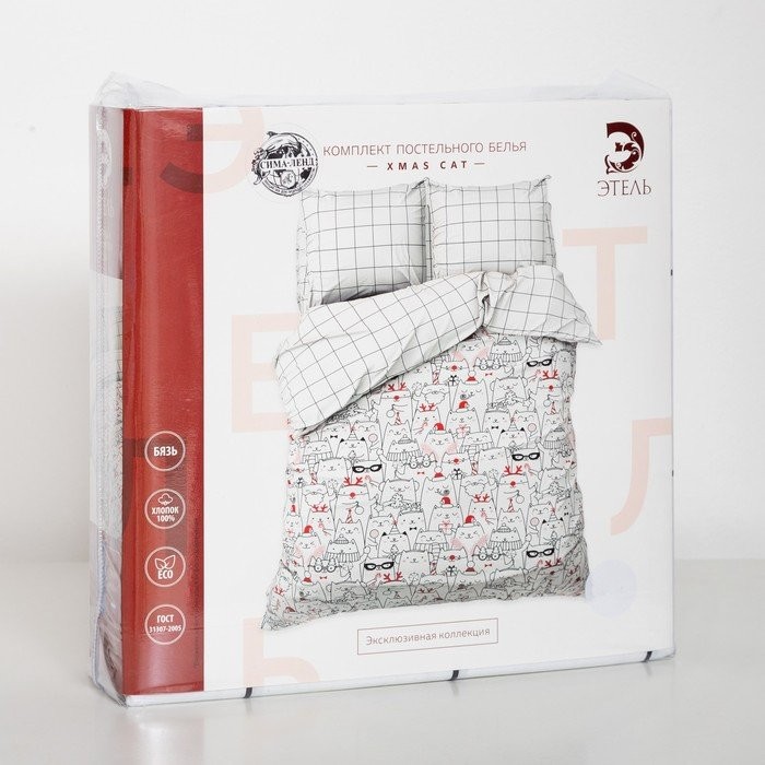 Постельное белье Этель Дуэт Xmas cat 143*215 см — 2 шт, 240*220 см, 70*70 см — 2 шт