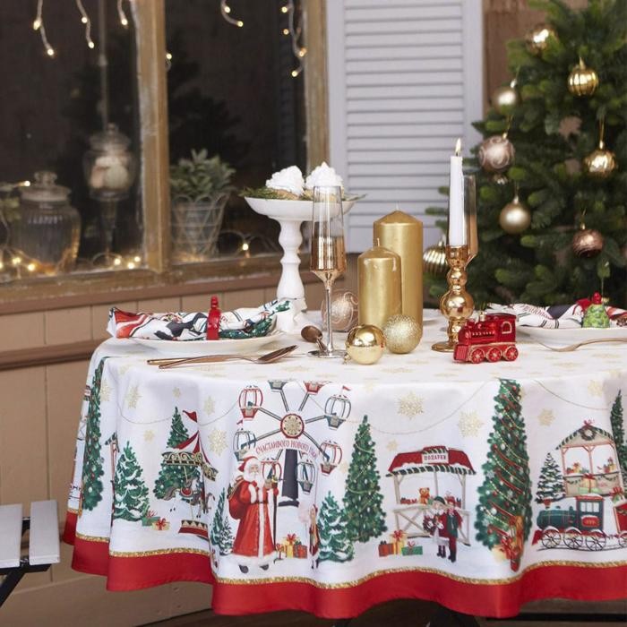 Скатерть «Этель» Новогодняя ярмарка d=220 +/- 3см с ГМВО, 100%хл, саржа 190 гр/м2