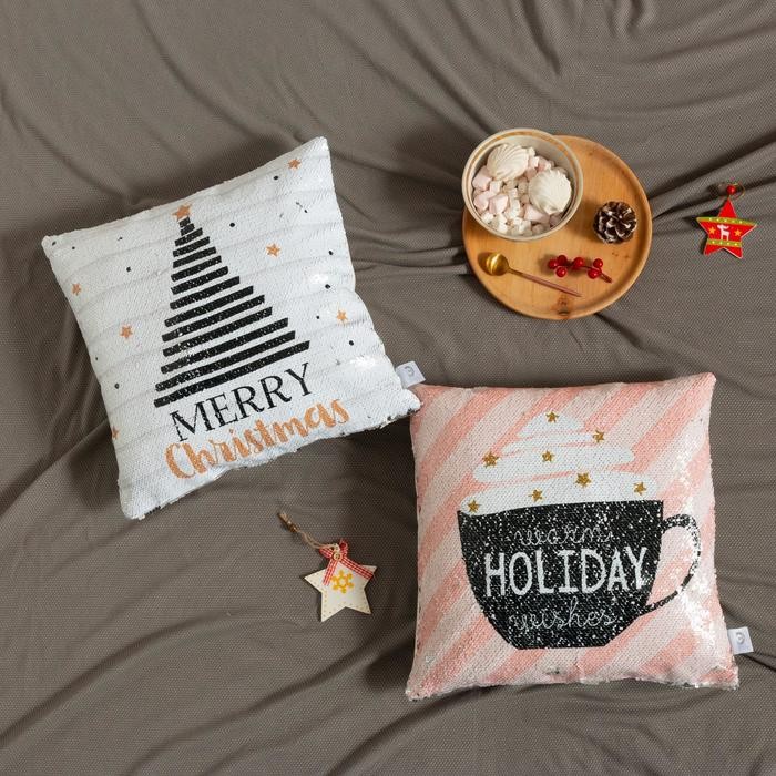 Наволочка с пайетками Этель «Holiday» 40×40 см, 100% п/э