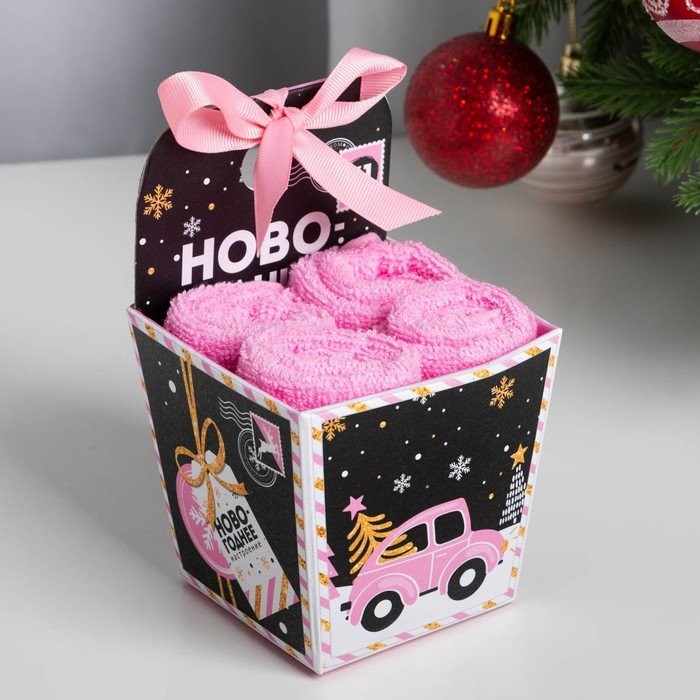 Набор махр. полотенец «Новогодний подарок» 30×30 см-4шт, хл 340г/м2