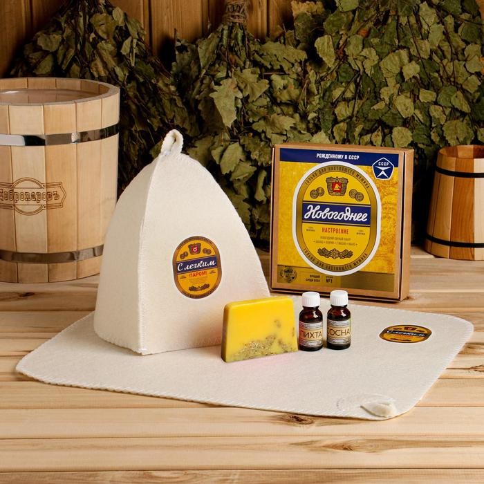 Банный набор «Новогоднее настроение» шапка, коврик, 2 масла, мыло