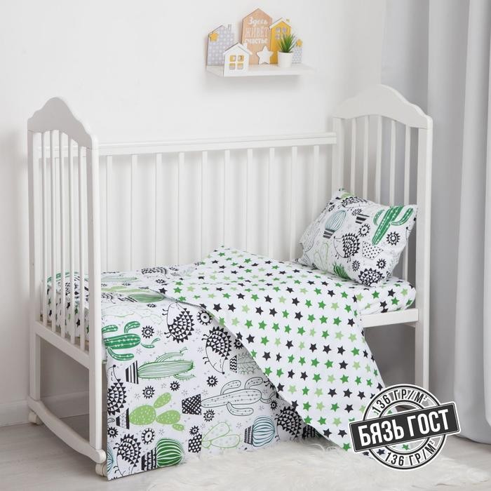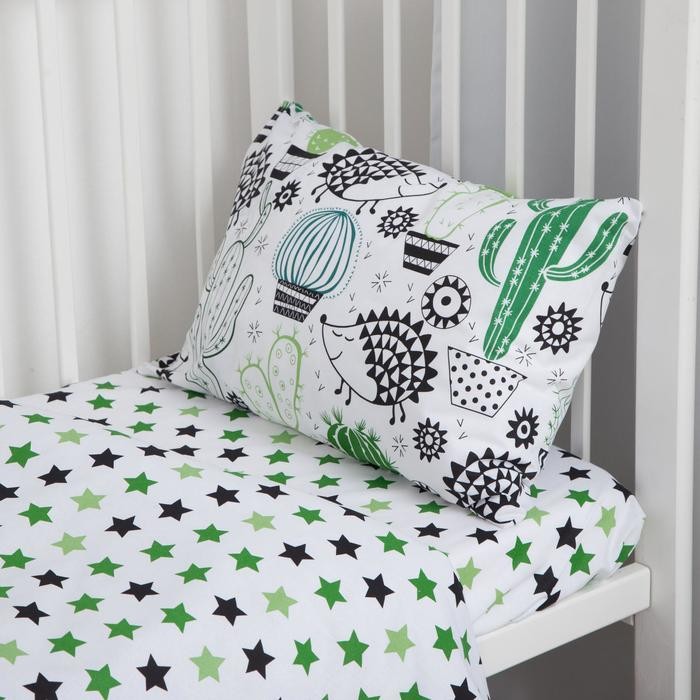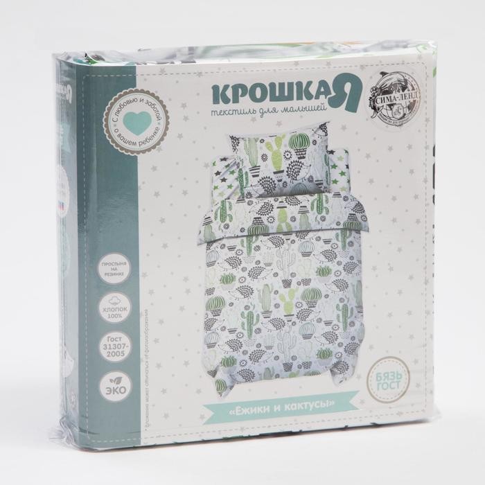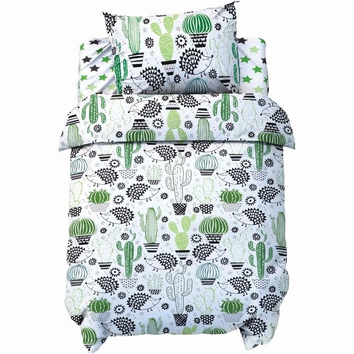 Постельное бельё детское Крошка Я «Ёжики и кактусы», 147×112 см, 60×120 + 20 см, 40×60 см
