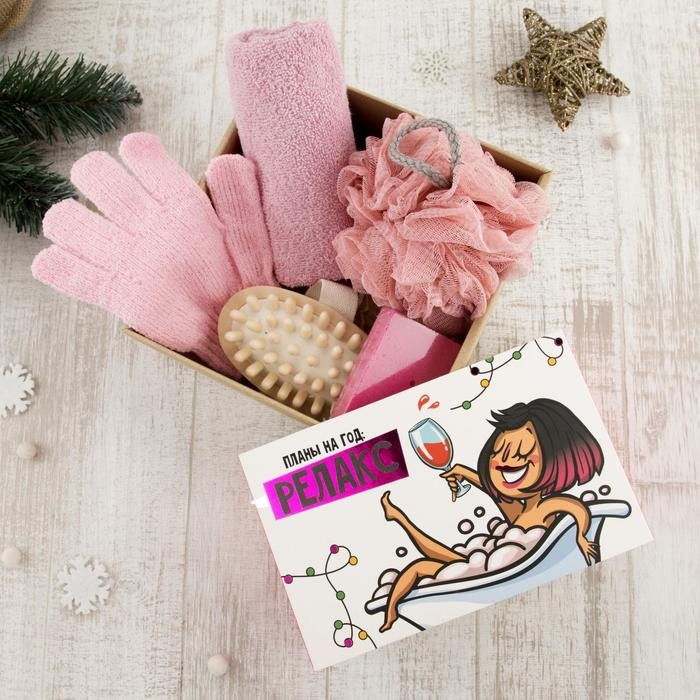 Подарочный набор Этель «Планы на год» полотенце 30×60 см и банные акс. (5 предм)