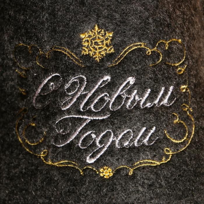 Тапочки банные серые с вышивкой «С Новым Годом (вензель)»