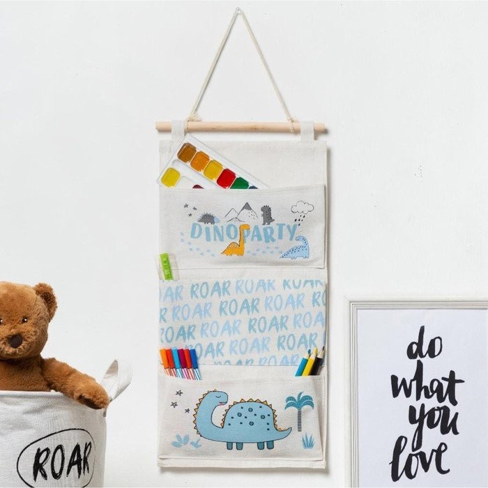Кармашек текстильный Этель «Dinoparty», 3 отделения, 26×50 см, водонепроницаемый