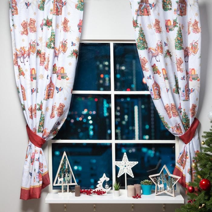 Комплект штор для кухни с подхватами «Новогодняя сказка» 145х180см-2 шт., габардин