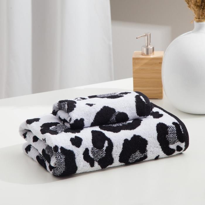 Полотенце махровое Этель ЧБ «Снежный барс», пестроткань, 30×60 см