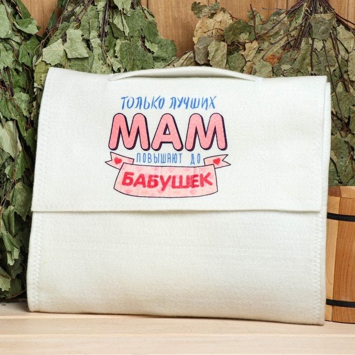 Набор для бани и сауны 5в1(сумка,шапка,варежка,коврик,мочалка),принт"Только лучших мам»,белый 543 323