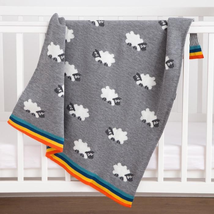 Плед вязаный Крошка Я «Овечки» цв. серый, 80*100 см, 100% хлопок