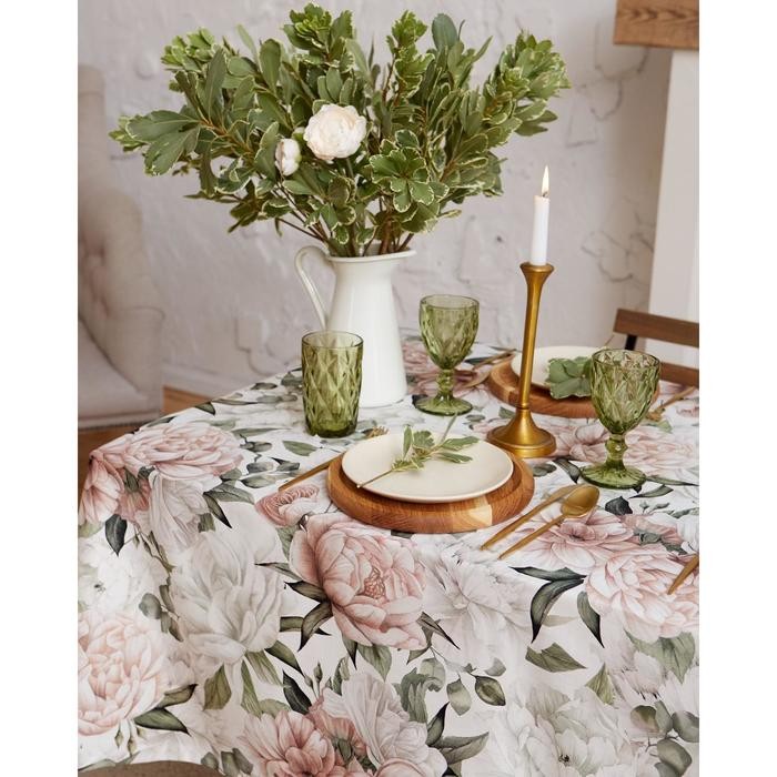 Скатерть «Этель» Пионы 149х220см, 100% хл, саржа 190 г/м2
