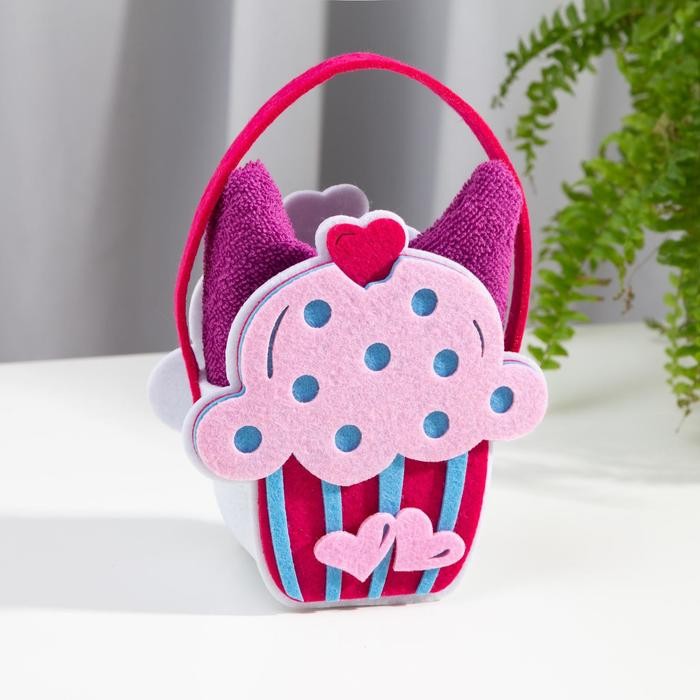 Набор полотенец в корзинке Этель «Сладкоежка» 30х30см — 2шт, цв.фуксия, 100% хл