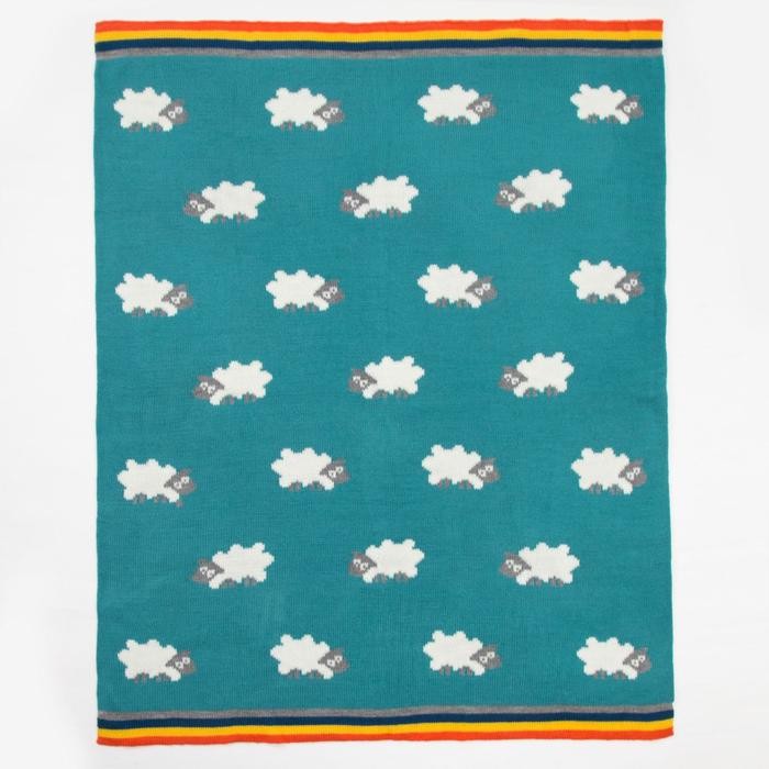 Плед вязаный Крошка Я «Овечки» цв. темно-зеленый, 80*100 см, 100% хлопок