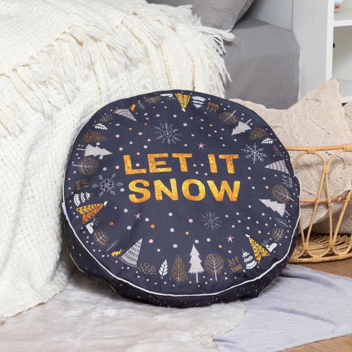 Чехол для пуфика Этель «Let it snow», d=60 см, рогожка, 100% п/э